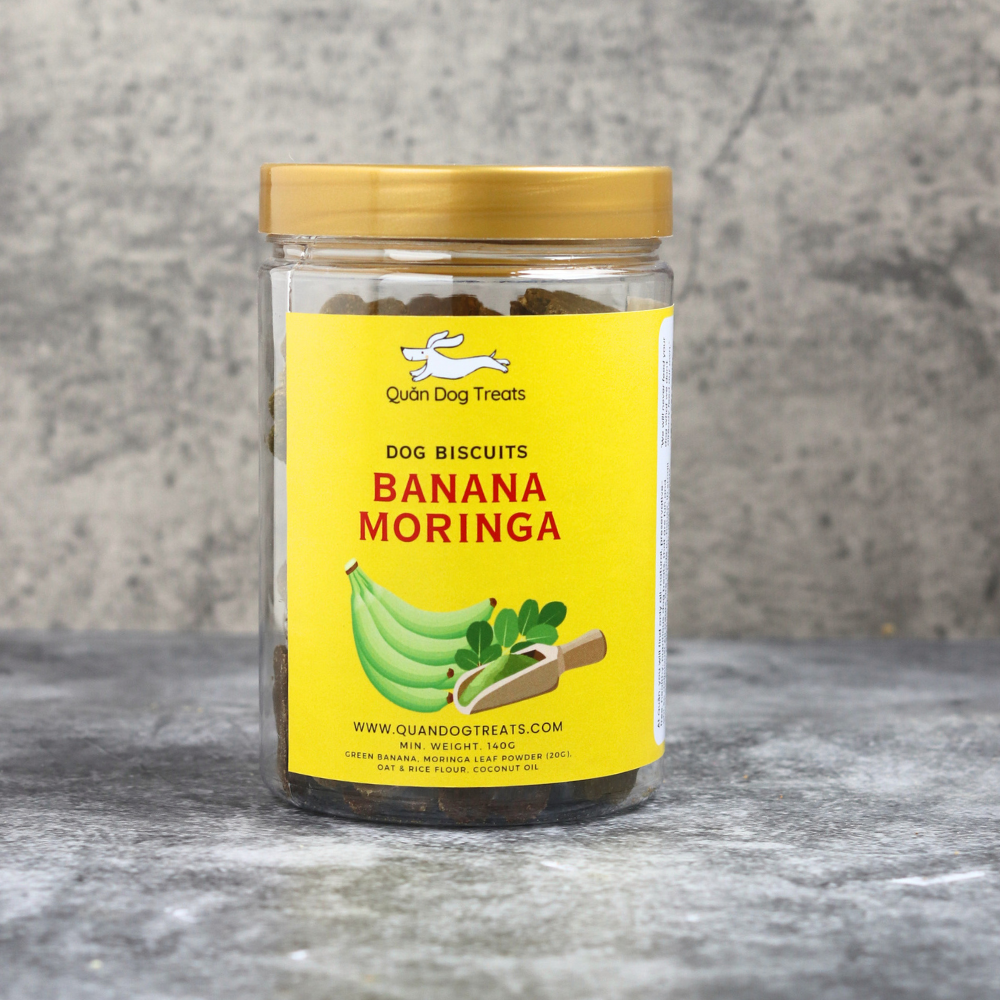 Each bottle of Banana Moringa dog biscuits contains at least 20g of moringa leaf powder, and the smell can be quite distinctive.