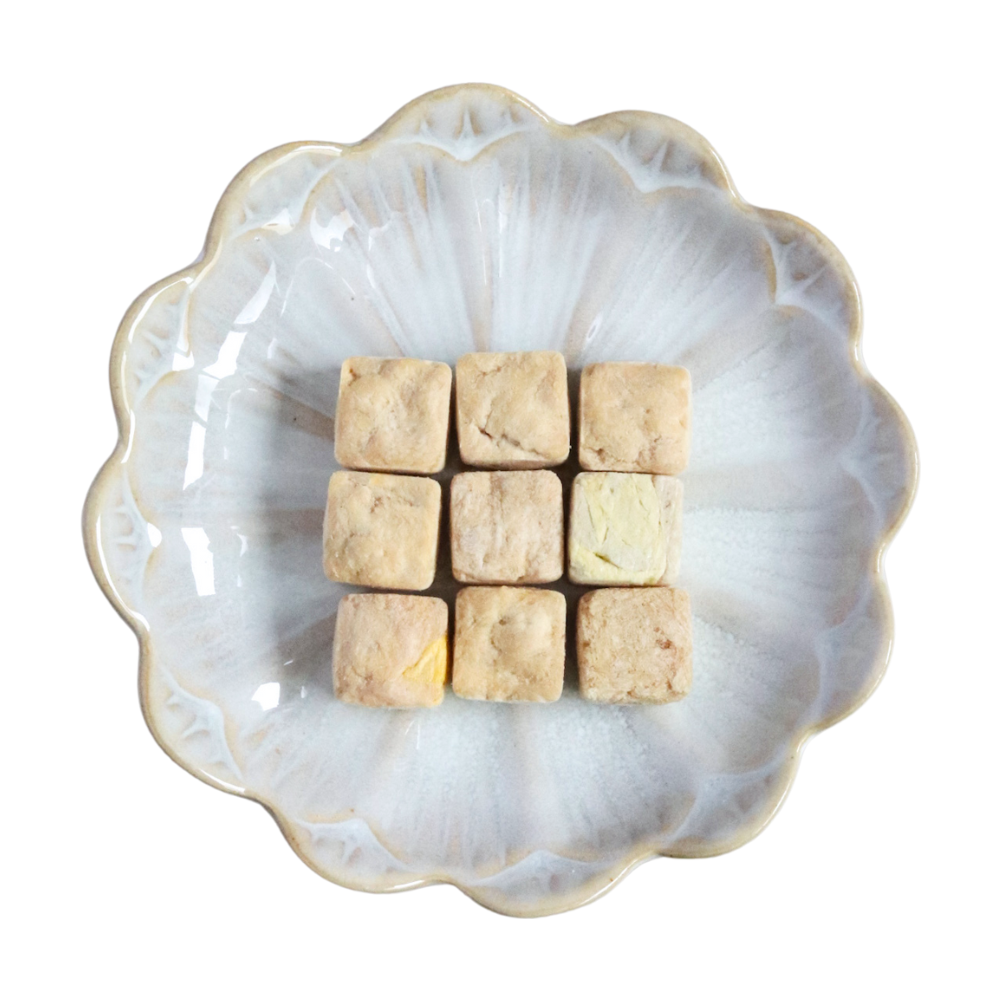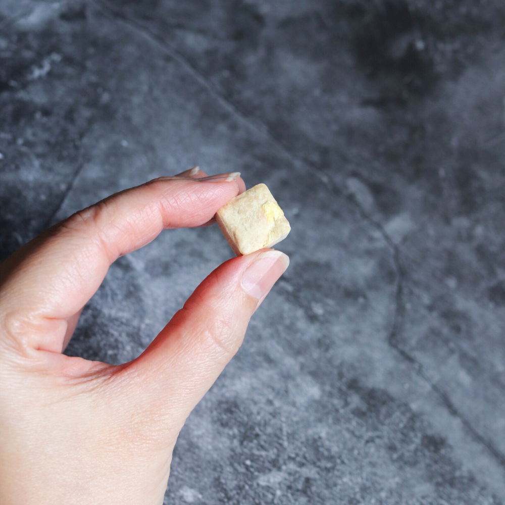 For pups who enjoy durian, the little cubes & lightweight texture make it suitable for training and the soft texture is suitable for senior dogs, puppies and kitties too!